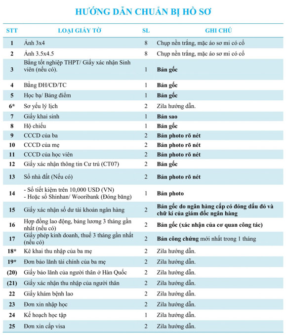 VI. HỒ SƠ DU HỌC HÀN QUỐC GỒM NHỮNG GÌ?